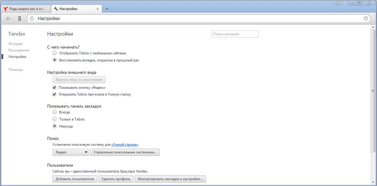 Новый Яндекс.Браузер сразу покажется вам очень знакомым, т.к. его интерфейс мало отличается от Chrome. Ничего удивительного в этом нет, ибо он построен на открытом движке WebKit плюс интерфейсная оболочка Chromium.
